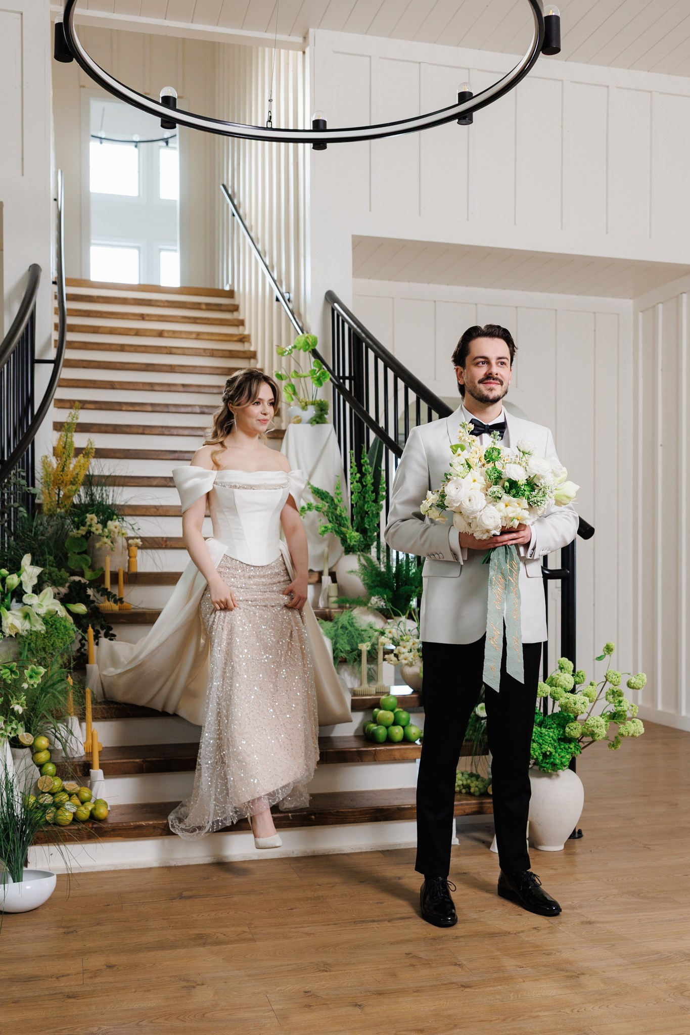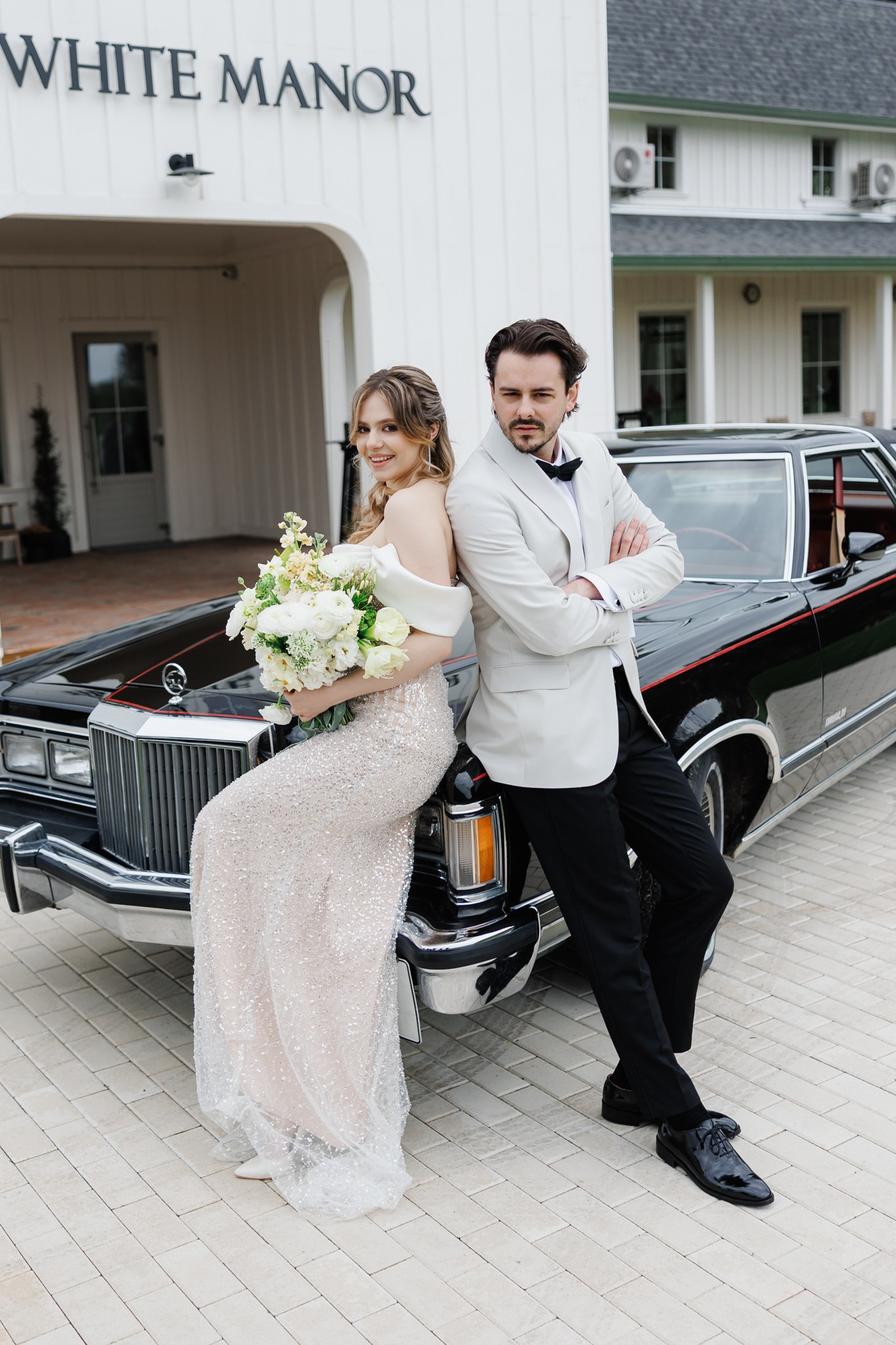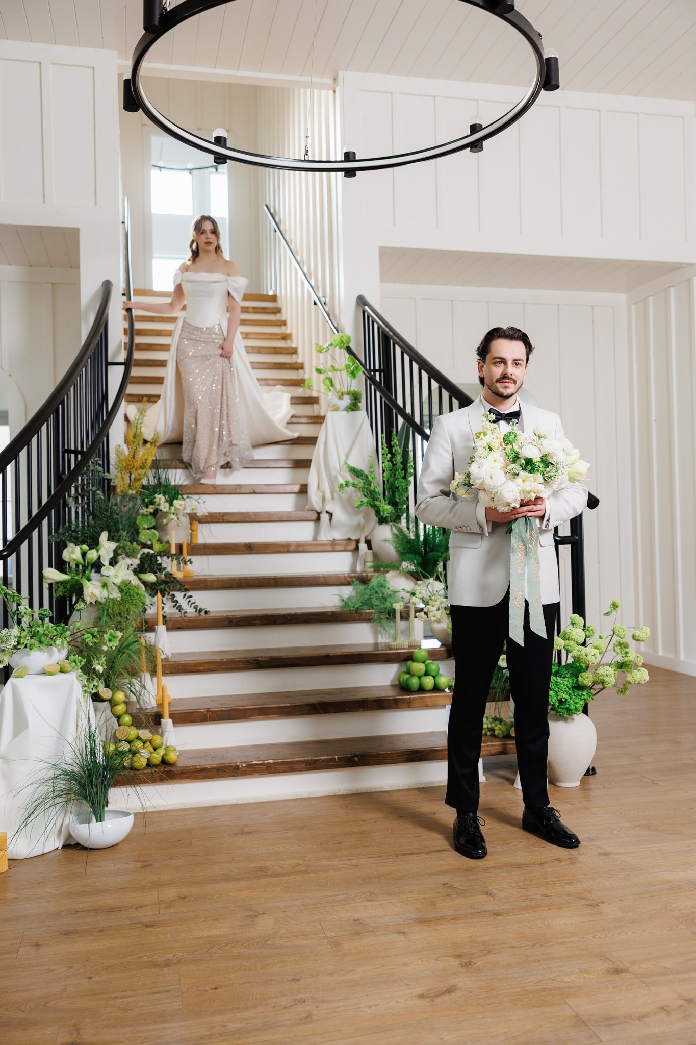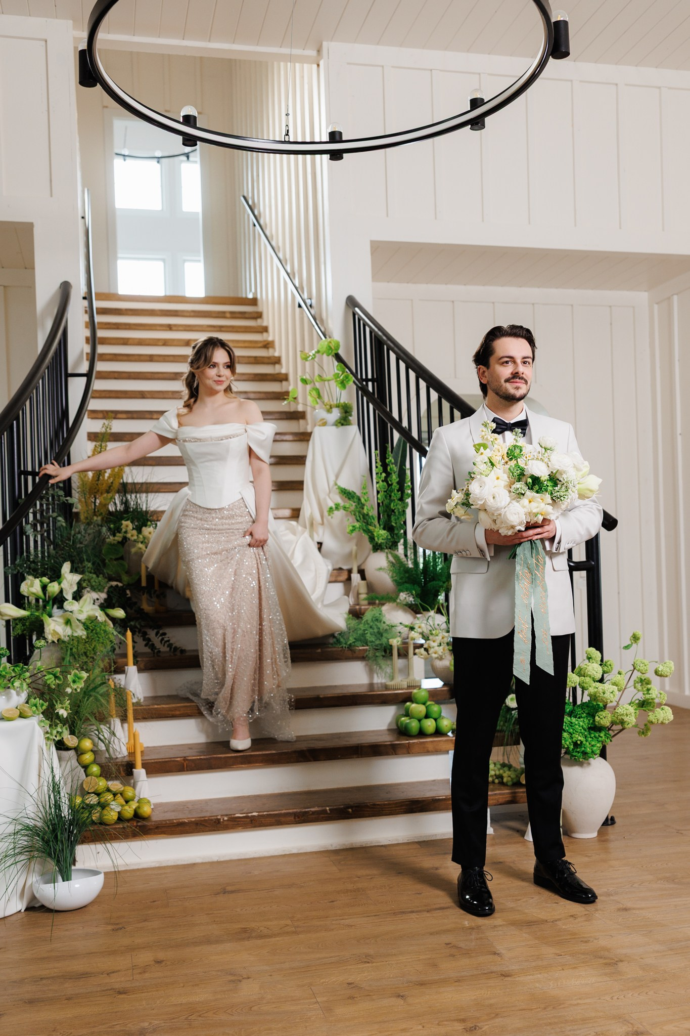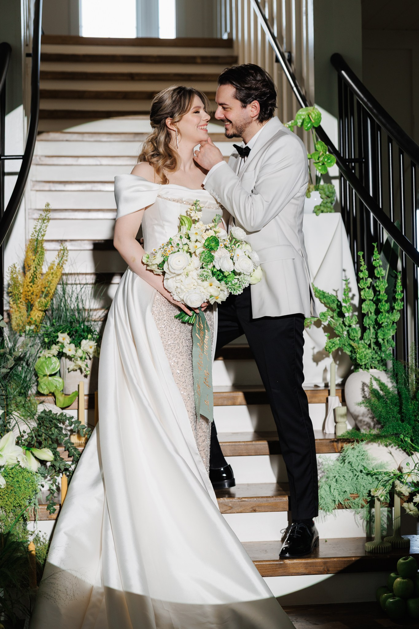 Ședință foto de nuntă cu miri, decor floral spectaculos, într-o locație de vis – The White Manor.