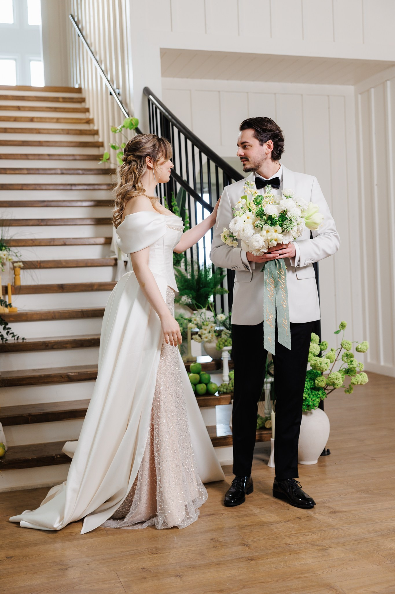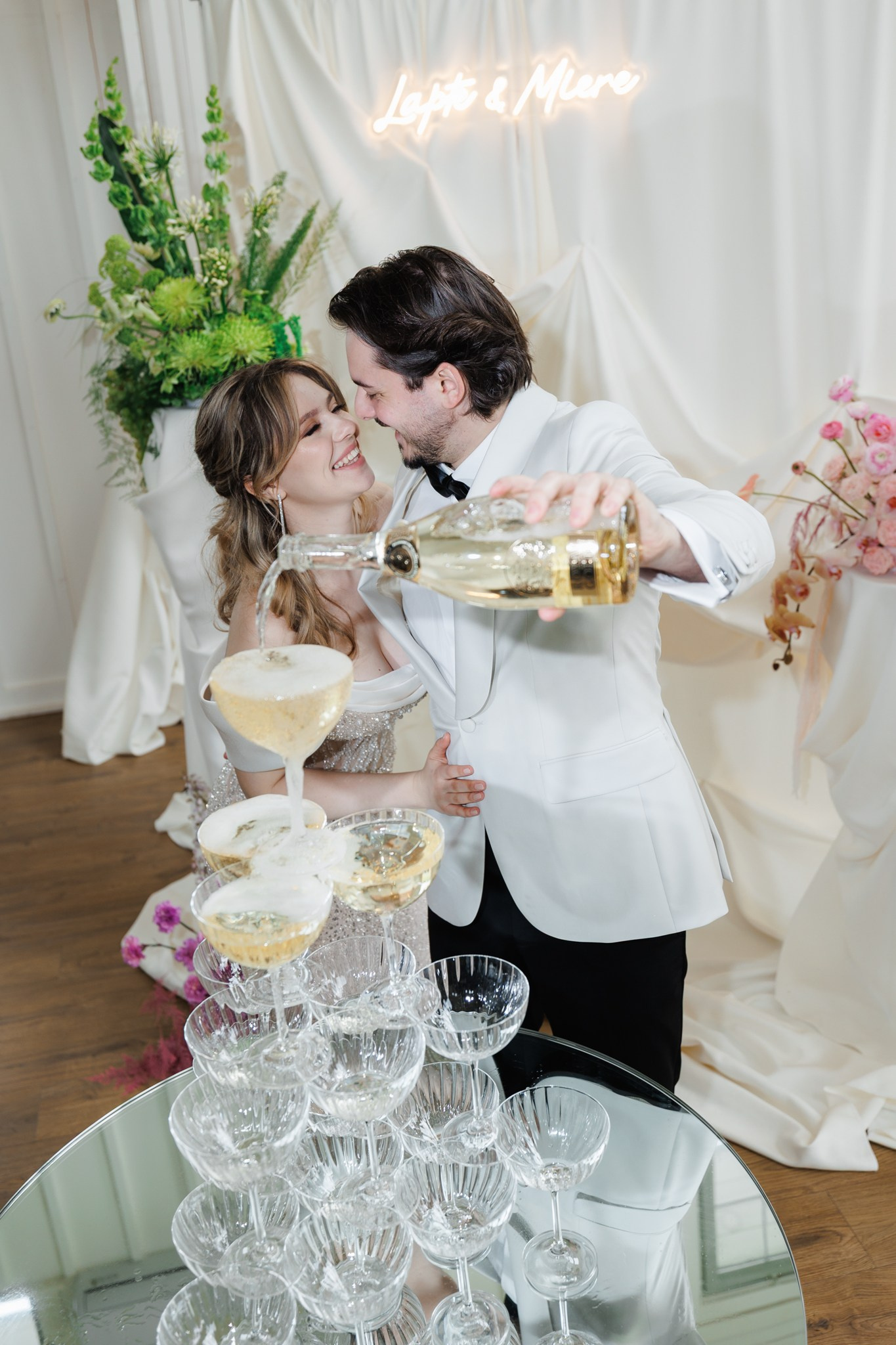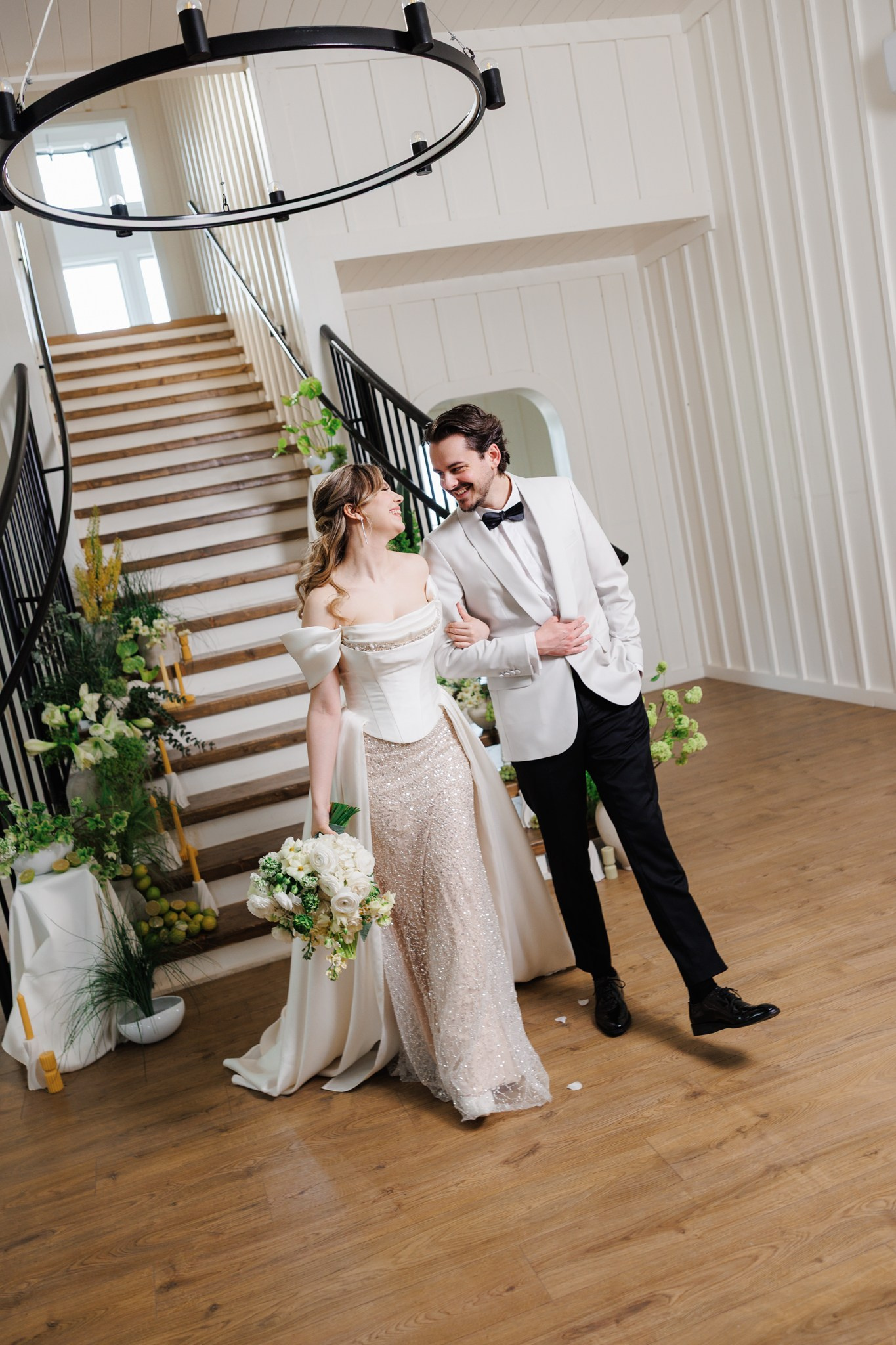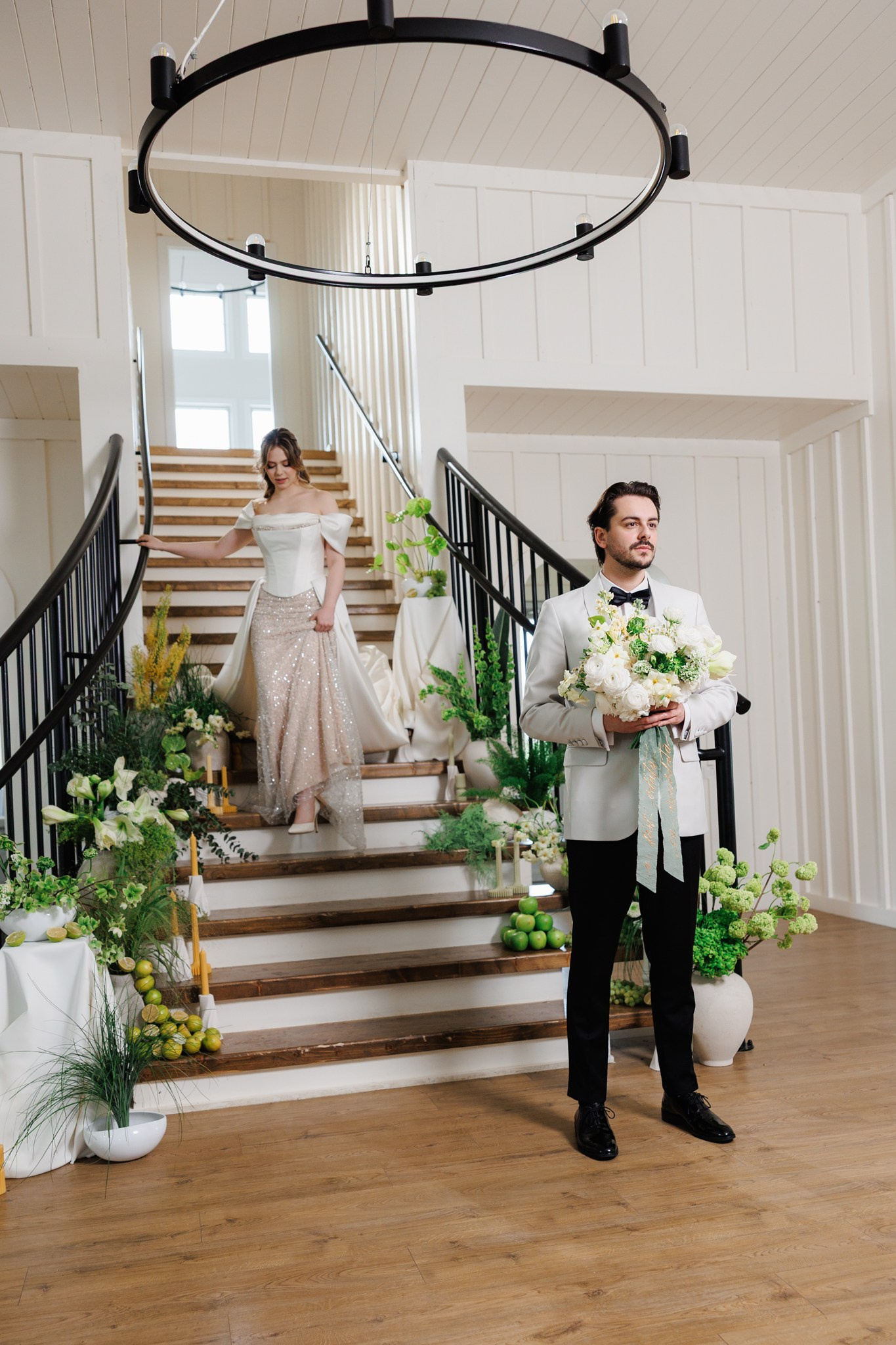 Ședință foto de nuntă cu miri, decor floral spectaculos, într-o locație de vis – The White Manor.