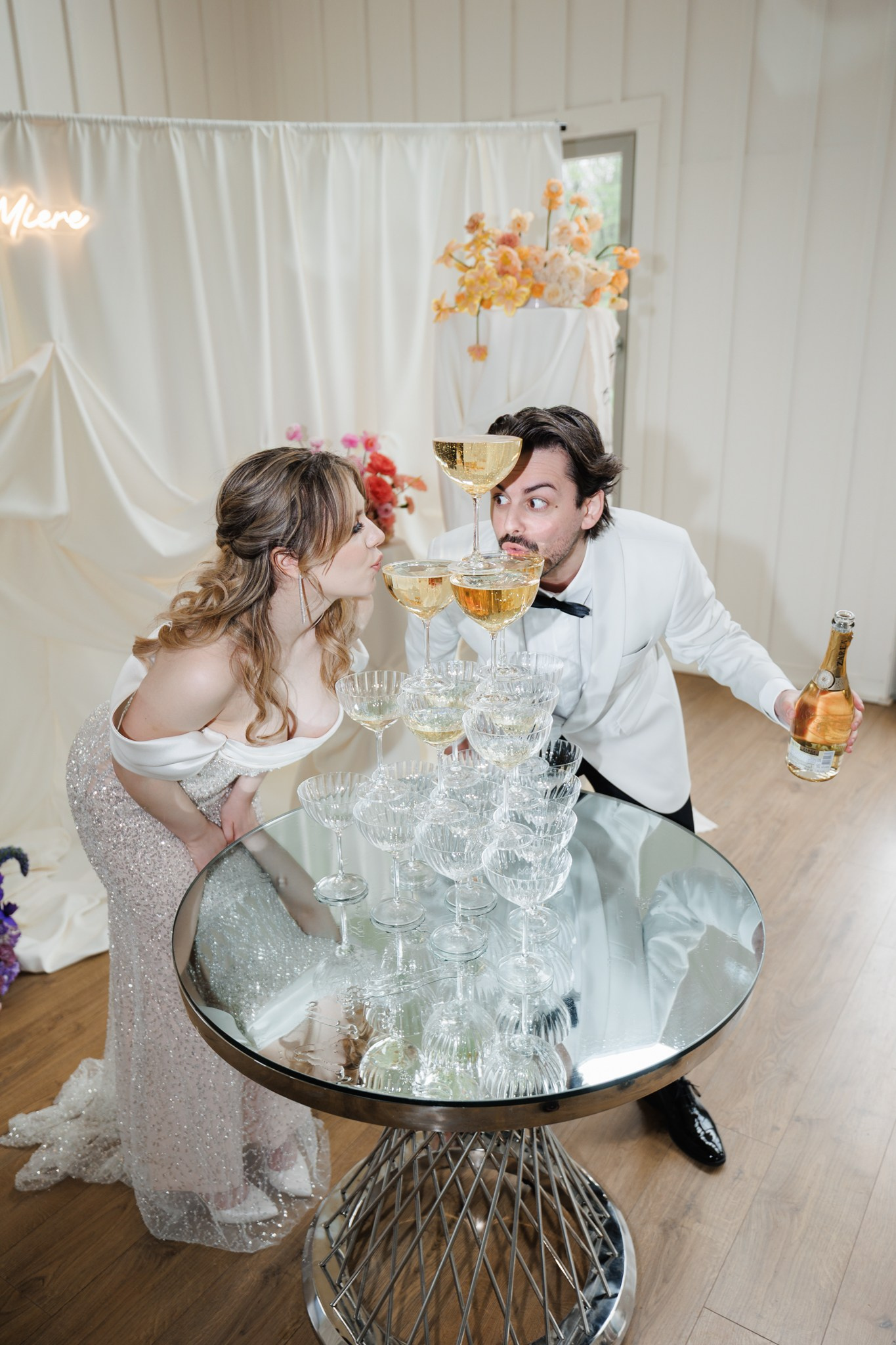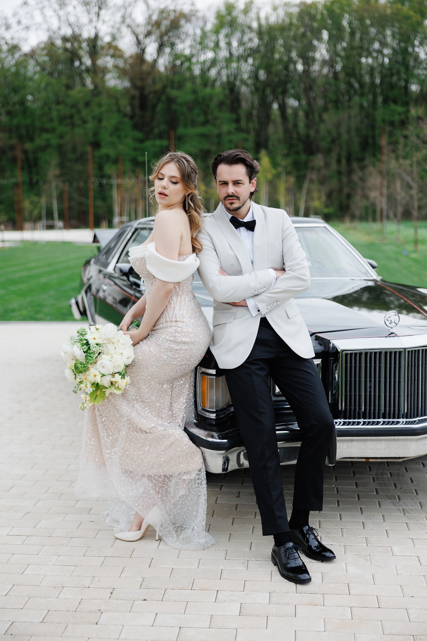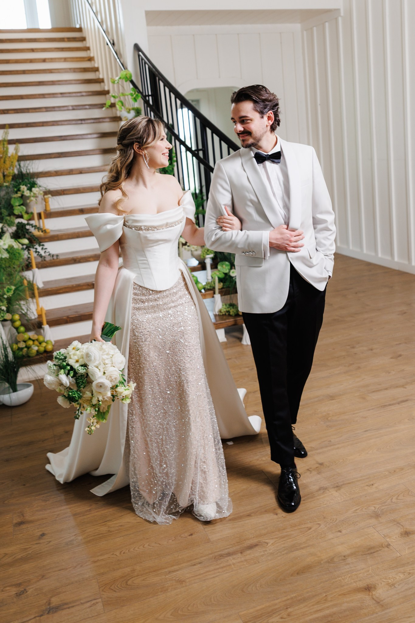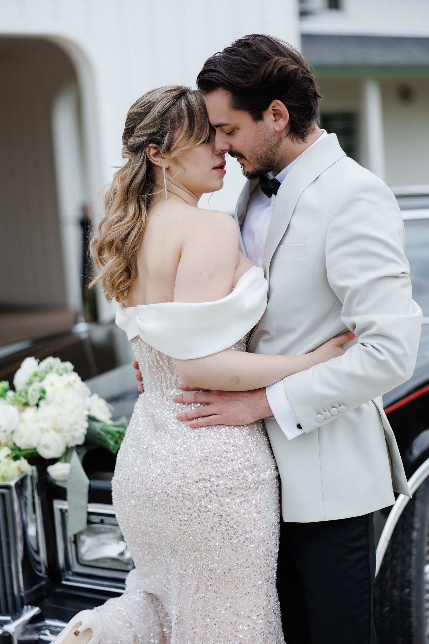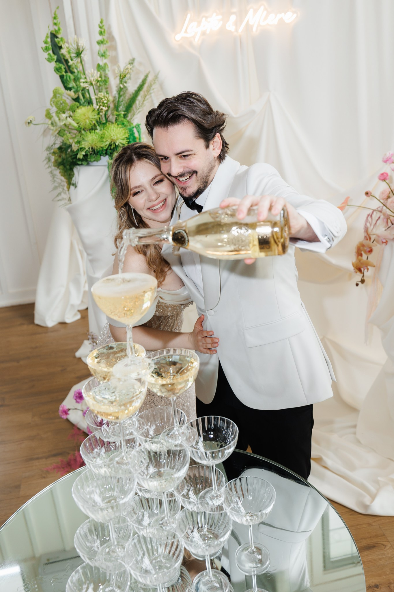 Ședință foto de nuntă cu miri, decor floral spectaculos, într-o locație de vis – The White Manor.